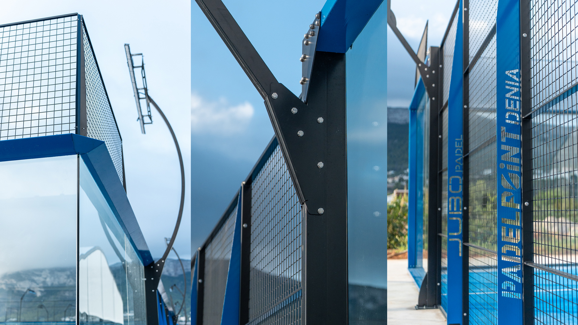 We use S355 + Z275 galvanized steel or galvanized S235 steel (depending on the court model) in the active perimeters of the court structure.